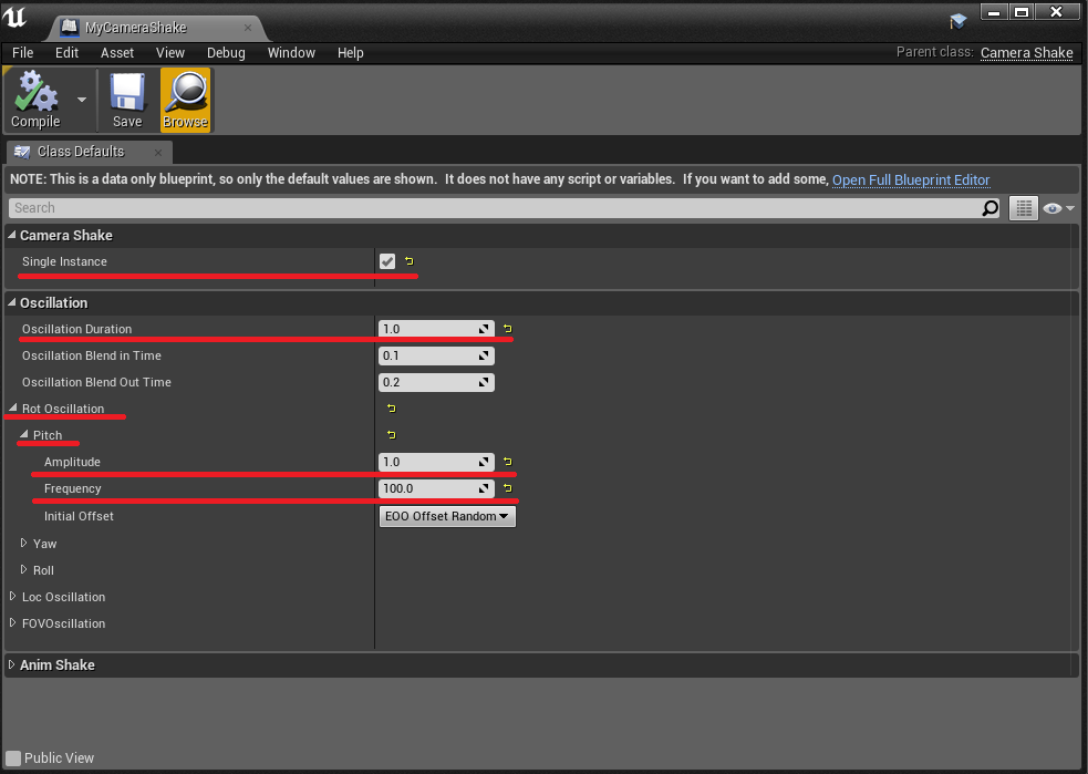 "Shake"에 여러분이 만든 "MyCameraShake"를 지정합니다.